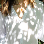 Avec le collier Subhagya, vous serez encouragée à explorer vos profondeurs intérieures et à rechercher la sagesse et la sérénité. Symbole de chance et d'équilibre, le trèfle sera votre guide sur le voyage de la découverte personnelle. Associé aux pierres naturelles telles que l’améthyste, la pierre de lune, la citrine, la labradorite et le péridot, ce collier est une véritable invitation à l'éveil intérieur et à la connexion spirituelle.